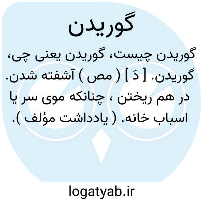 گوریدن. [ دَ ] ( مص ) آشفته شدن. در هم ریختن، چنانکه موی سر یا اسباب خانه. ( یادداشت مؤلف ).