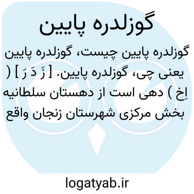گوزلدره پایین. [ زَ دَ رَ ] ( اِخ ) دهی است از دهستان سلطانیه بخش مرکزی شهرستان زنجان واقع در27 هزارگزی خاور زنجان و 12 هزارگزی راه عمومی. دامنه و سردسیر است و 1638 تن سکنه دارد. آب آن از چشمه و رودخانه و قنات تأمین میشود. محصول آن غلات و بنشن و انگور و میوه و شغل اهالی زراعت و قالیچه بافی و راه آن مالرو است. ( از فرهنگ جغرافیایی ایران ج 2 ).