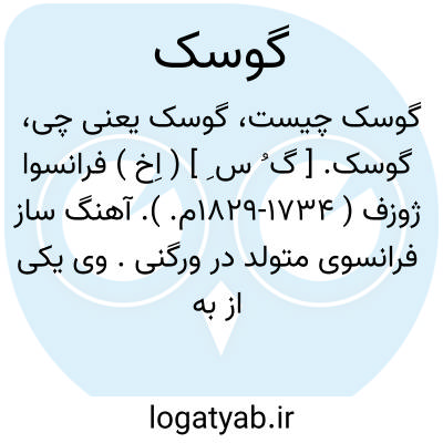 گوسک. [ گ ُ س ِ ] ( اِخ ) فرانسوا ژوزف ( 1734-1829م. ). آهنگ ساز فرانسوی متولد در ورگنی. وی یکی از به وجودآورندگان سمفونی است. گوسک سازنده آهنگ های انقلابی و یکی از استادان هنرستان است.