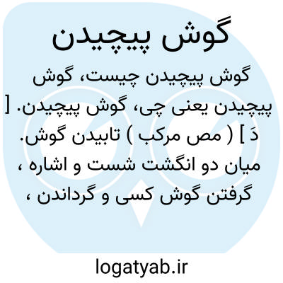 گوش پیچیدن. [ دَ ] ( مص مرکب ) تابیدن گوش. میان دو انگشت شست و اشاره، گرفتن گوش کسی و گرداندن، تأدیب و سیاست و مجازات او را.