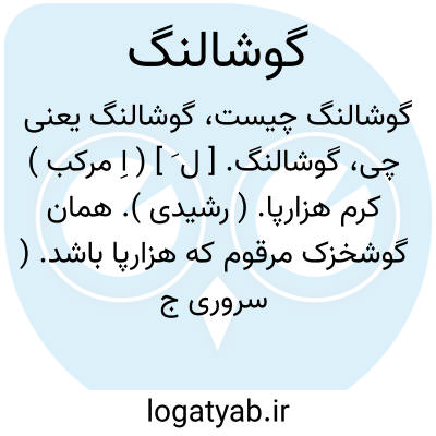 گوشالنگ. [ ل َ ] ( اِ مرکب ) کرم هزارپا. ( رشیدی ). همان گوشخزک مرقوم که هزارپا باشد. ( سروری ج 3 ص 1214 ). گوش خارک. گوش خبه. گوش خز. گوش خزک. گوش خزه: