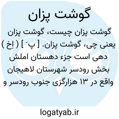 گوشت پزان. [ پ َ ] ( اِخ ) دهی است جزء دهستان املش بخش رودسر شهرستان لاهیجان واقع در 13 هزارگزی جنوب رودسر و 12 هزارگزی خاور املش. کوهستانی و معتدل مرطوب مالاریایی و سکنه آن 100 تن است. آب آن از چشمه سار تأمین میشود. محصول آن لبنیات و شغل اهالی گله داری و شال بافی و راه آن مالرو است. تابستان عموماً به ییلاق سمام می روند. ( از فرهنگ جغرافیایی ایران ج 2 ).