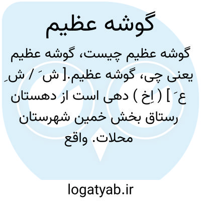 گوشه عظیم.[ ش َ / ش ِ ع َ ] ( اِخ ) دهی است از دهستان رستاق بخش خمین شهرستان محلات. واقع در یک هزارگزی باختر خمین. جلگه و معتدل و سکنه اش 130 تن است. آب آن از قنات تأمین میشود. محصول آن غلات و بنشن و پنبه و چغندرقند وانگور و بادام و شغل اهالی زراعت و راه آن از طریق خمین ماشین رو است. ( از فرهنگ جغرافیایی ایران ج 1 ).