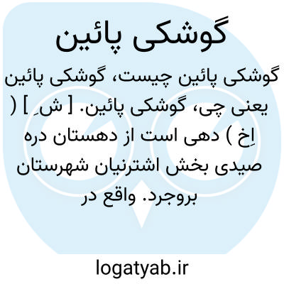 گوشکی پائین. [ ش ِ ] ( اِخ ) دهی است از دهستان دره صیدی بخش اشترنیان شهرستان بروجرد. واقع در 16هزارگزی شمال خاوری اشترنیان، کنار راه مالرو گل زرد به اشترنیان. جلگه و سردسیر و سکنه آن 813 تن است. آب آن از قنات و چشمه و محصول آن غلات و شغل اهالی زراعت و راه آن مالرو است. ( از فرهنگ جغرافیایی ایران ج 6 ).