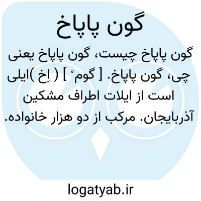 گون پاپاخ. [ گوم ْ ] ( اِخ )ایلی است از ایلات اطراف مشکین آذربایجان. مرکب از دو هزار خانواده. ییلاق آنها سنبلاق است و به مغان قشلاق میکنند. شغل ایشان زراعت است و از طوایف مختلفه قوجه بیک محسوب میشوند. ( جغرافیای سیاسی کیهان ص 108 ).