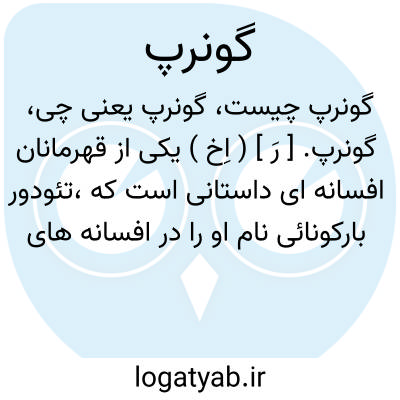گونرپ. [ رَ ] ( اِخ ) یکی از قهرمانان افسانه ای داستانی است که،تئودور بارکونائی نام او را در افسانه های ایرانی آورده است. و کریستن سن عبارت مبهم او را چنین نقل میکند: زمین دوشیزه جوانی بود، که نامزدی داشت پریسگ نام. آتش صاحب عقل بود و باشخصی مصاحبت داشت گونرپ نام، به معنی «رطوبت جنگلها»، پریسگ گاهی به صورت کبوتر و زمانی مورچه و وقتی سگ پیر تجلی میکرد. ( ایران در زمان ساسانیان ص 178 ).