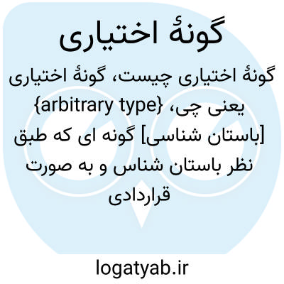 فرهنگستان زبان و ادب {arbitrary type} [باستان شناسی] گونه ای که طبق نظر باستان شناس و به صورت قراردادی برای دست ساخته ها تعیین می شود