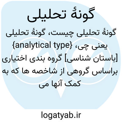 {analytical type} [باستان شناسی] گروه بندی اختیاری براساس گروهی از شاخصه ها که به کمک آنها می توان گونه های کلی دست ساخته ها را دسته بندی کرد