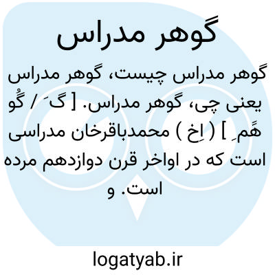 گوهر مدراس. [ گ َ / گُو هََم ِ ] ( اِخ ) محمدباقرخان مدراسی است که در اواخر قرن دوازدهم مرده است. و از گویندگان فارسی زبان بوده است و دیوان شعر فارسی نیز دارد. ( الذریعه ج 9 ص 37 ).