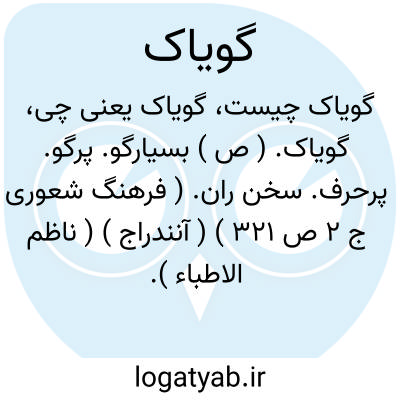 لغت نامه دهخدا گویاک. ( ص ) بسیارگو. پرگو. پرحرف. سخن ران. ( فرهنگ شعوری ج 2 ص 321 ) ( آنندراج ) ( ناظم الاطباء ).