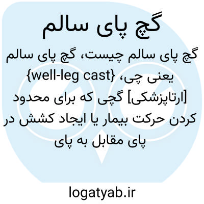 {well-leg cast} [ارتاپزشکی] گچی که برای محدود کردن حرکت بیمار یا ایجاد کشش در پای مقابل به پای سالم گرفته شود