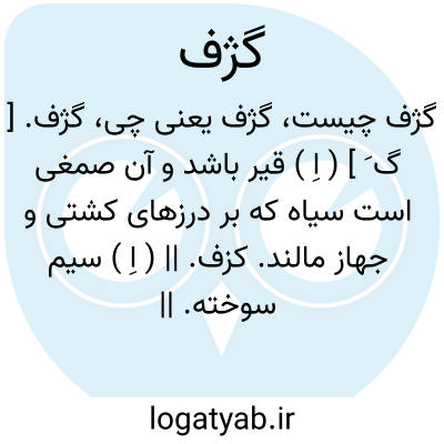 گژف. [ گ َ ] ( اِ ) قیر باشد و آن صمغی است سیاه که بر درزهای کشتی و جهاز مالند. کزف. || ( اِ ) سیم سوخته. || سواد زرگری. ( برهان ) ( آنندراج ). به همه معانی ظاهراً مصحف «کرف » است. و رجوع به گزف و کشف و کرف شود.