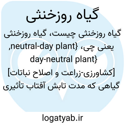 {neutral-day plant, day-neutral plant} [کشاورزی-زراعت و اصلاح نباتات] گیاهی که مدت تابش آفتاب تأثیری بر گلدهی آن ندارد