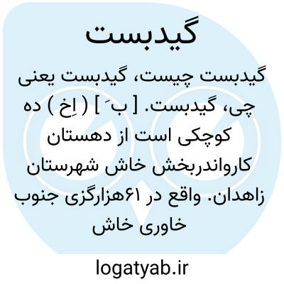 گیدبست. [ ب َ ] ( اِخ ) ده کوچکی است از دهستان کارواندربخش خاش شهرستان زاهدان. واقع در 61هزارگزی جنوب خاوری خاش و 15هزارگزی شمال شوسه خاش به ایرانشهر. سکنه آن 15 تن است. ( از فرهنگ جغرافیایی ایران ج 8 ).