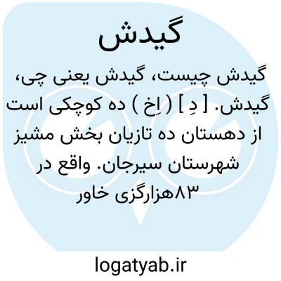 گیدش. [ دِ ] ( اِخ ) ده کوچکی است از دهستان ده تازیان بخش مشیز شهرستان سیرجان. واقع در 83هزارگزی خاور مشیز سر راه مالرو شیرینک به چهارطاق. سکنه آن 15 تن است. ( از فرهنگ جغرافیایی ایران ج 8 ).