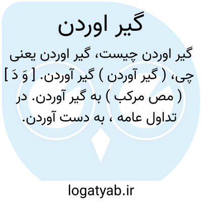 ( گیر آوردن ) ( مصدر ) ۱ - بدست آوردن حاصل کردن: تو تا حالا نفهمیدی از کجا این دم و دستگاه و دارایی را گیر آورده ۲ ? - اسیر کردن مقید ساختن.