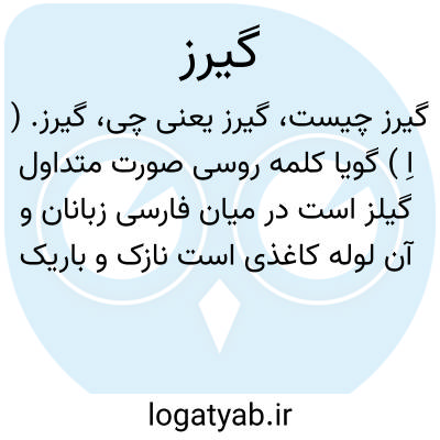 گیرز. ( اِ ) گویا کلمه روسی صورت متداول گیلز است در میان فارسی زبانان و آن لوله کاغذی است نازک و باریک که دو لب آن را به درازا به یکدیگر چسبانده اند تا توتون در آن کنند و سیگارت سازند. ( یادداشت به خط مؤلف ). توضیح آنکه آنچه از سیگارت با دست پیچند کاغذ آن را «کاغذ سیگار» گویند و آنچه بوسیله ماشین پیچیده شود کاغذ آن را گیرز اصطلاح کنند.