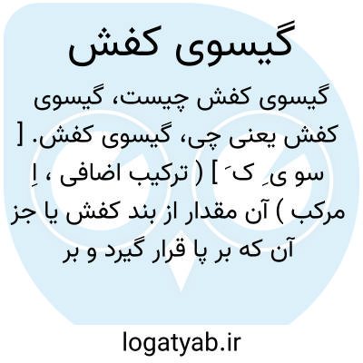 گیسوی کفش. [ سو ی ِ ک َ ] ( ترکیب اضافی، اِ مرکب ) آن مقدار از بند کفش یا جز آن که بر پا قرار گیرد و بر زمین ساید. ( یادداشت مؤلف ): ذُؤابَةُ النعل؛ گیسوی کفش. ( منتهی الارب ) ( از اقرب الموارد ). هِلال. ( اقرب الموارد ). هلال؛ گیسوی کفش. ( منتهی الارب ).