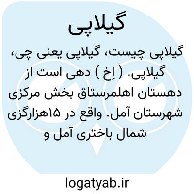 گیلاپی. ( اِخ ) دهی است از دهستان اهلمرستاق بخش مرکزی شهرستان آمل. واقع در 15هزارگزی شمال باختری آمل و 2هزارگزی باختر شوسه آمل به محمودآباد. واقع در دشت و هوای آن معتدل و مرطوب و سکنه آن 185 تن است. آب آن از رودخانه هراز و چشمه های بولیده تأمین میشود. محصول آن برنج، کنف و پنبه و شغل اهالی زراعت است. ( از فرهنگ جغرافیایی ایران ج 3 ).