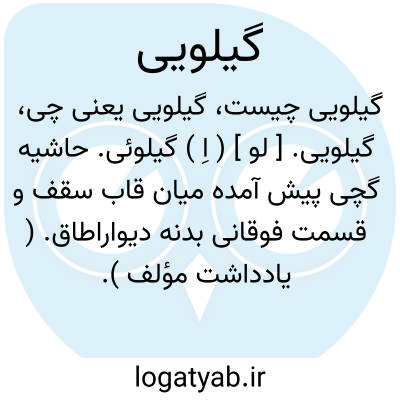 گیلویی. [ لو ] ( اِ ) گیلوئی. حاشیه گچی پیش آمده میان قاب سقف و قسمت فوقانی بدنه دیواراطاق. ( یادداشت مؤلف ). حاشیه گچی مقعر و یا به اصطلاح بنایان غلطانی است که در فاصله سقف ( یا قاب سقف ) و قسمت فوقانی دیوار به عرض حدود نیم گز و یا کمترو بیشتر دور تا دور اطاق پدید آرند و گاه بر این حاشیه غلطان ( مقعر ) نقش و نگاری از گل و بته و یا شکل پرندگان و یا میوه ها و غیره پدیدار و یا گچ بری کنندو این حاشیه گاه از سوی سقف و نیز از سوی بدنه دیوار به ابزار ختم شود و ابزار کشویی است از گچ و به تعبیر بهتر پیش آمدگی موازی ممتدی است که از سطح دیوارو یا سطح سقف حدود یک سانتی متر برجستگی دارد و این برجستگی بتدریج در جهت تلاقی سقف و بدنه دیوار کم و کمتر شود تا محو گردد. گاه ابزار از دو و یا سه کشو و یا برجستگی موازی تشکیل گردد به فاصله های کم از یکدیگر ( این کلمه را با نعل زدن و ابزار زدن ) به کار برند که عمل پدید آوردن این برجستگی ها و کشوها است.