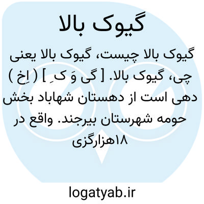 گیوک بالا. [ گی وَ ک ِ ] ( اِخ ) دهی است از دهستان شهاباد بخش حومه شهرستان بیرجند. واقع در 18هزارگزی جنوب باختری بیرجند. محلی کوهستانی و هوای آن معتدل و سکنه آن 135 تن است. آب آن از قنات تأمین میشود. محصول آن غلات و میوه جات است. شغل اهالی زراعت و صنایع دستی آنان کرباس بافی می باشد. معدن مس و زاج سیاه در کوههای اطراف آن موجود است. ( از فرهنگ جغرافیایی ایران ج 9 ).