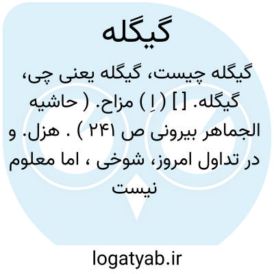 گیگله. [ ] ( اِ ) مزاح. ( حاشیه الجماهر بیرونی ص 241 ). هزل. و در تداول امروز، شوخی، اما معلوم نیست اصل کلمه چه بوده است.