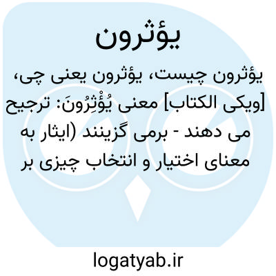 [ویکی الکتاب] معنی یُؤْثِرُونَ: ترجیح می دهند - برمی گزینند (ایثار به معنای اختیار و انتخاب چیزی بر غیر آن است )