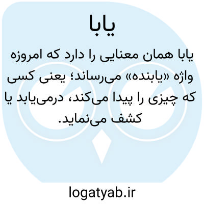 واژه «یابا» در زبان فارسی به معنای یابنده یا کسی که مییابد است. این واژه از ریشه فعل «یافتن» گرفته شده و در ساختار کهن زبان فارسی، با افزودن پسوند «ـا» به ریشه فعل، اسم فاعل یا صفت فاعلی ساخته میشده است. بنابراین، «یابا» همان معنایی را دارد که امروزه واژه «یابنده» میرساند؛ یعنی کسی که چیزی را پیدا میکند، درمییابد یا کشف مینماید.