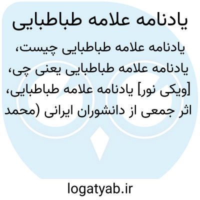 [ویکی نور] یادنامه علامه طباطبایی، اثر جمعی از دانشوران ایرانی (محمد محمدی گیلانی، رضا داوری اردکانی، محمدتقی جعفری، حسن حسن زاده آملی، احمد احمدی، محمدتقی مصباح، عبدالله جوادی آملی، عبدالمحسن مشکوةالدینی، علیرضا میرزامحمد، محمد عبدخدایی و غلامحسین ابراهیمی دینانی) و حاصل مشارکت آنان در نخستین سمینار بزرگداشت علامه طباطبایی است که در آبان 1361 به همت مؤسسه مطالعات و تحقیقات فرهنگی برگزار گردید.