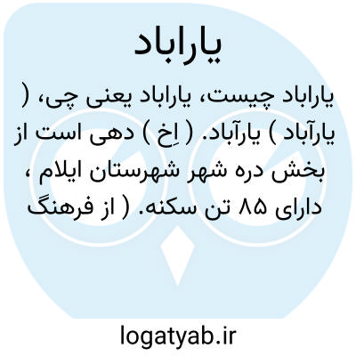 ( یارآباد ) یارآباد. ( اِخ ) دهی است از بخش دره شهر شهرستان ایلام، دارای 85 تن سکنه. ( از فرهنگ جغرافیایی ایران ج 5 ).