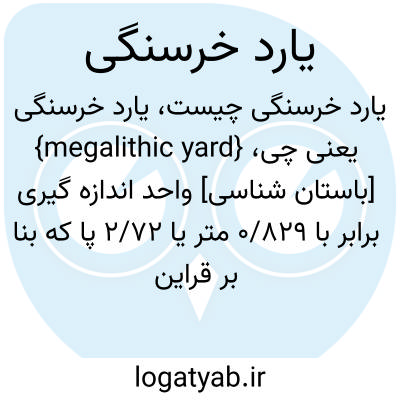 {megalithic yard} [باستان شناسی] واحد اندازه گیری برابر با 0/829 متر یا 2/72 پا که بنا بر قراین موجود در آثار خرسنگی به جا مانده در بریتانیا و بروتانی فرانسه به کار می رفته است
