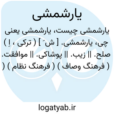 یارشمشی. [ ش َ ] ( ترکی، اِ ) صلح. || زیب. || پوشاکی. || موافقت. ( فرهنگ وصاف ) ( فرهنگ نظام ) ( آنندراج ). و در این معنی صورتی از یارشمیشی تواند بود. رجوع به یارشمیشی شود.