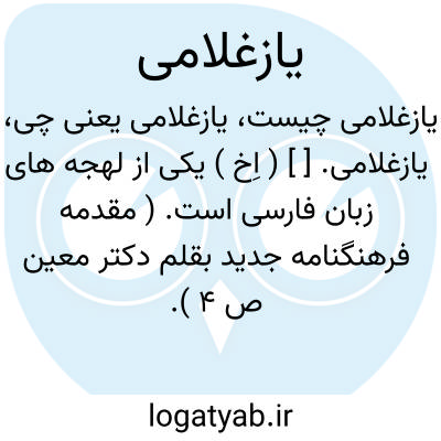 یازغلامی. [ ] ( اِخ ) یکی از لهجه های زبان فارسی است. ( مقدمه فرهنگنامه جدید بقلم دکتر معین ص 4 ).