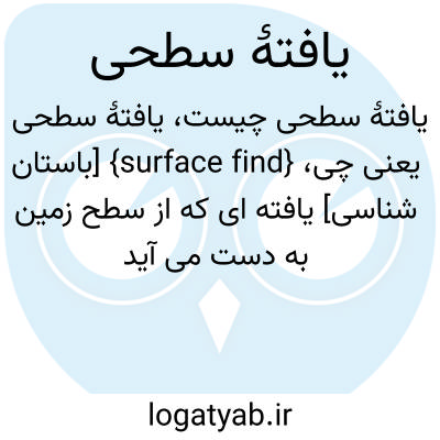 {surface find} [باستان شناسی] یافته ای که از سطح زمین به دست می آید