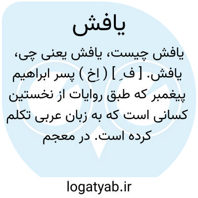 یافش. [ ف ِ ] ( اِخ ) پسر ابراهیم پیغمبر که طبق روایات از نخستین کسانی است که به زبان عربی تکلم کرده است. در معجم البلدان آمده است: آخرین کسانی که خدا آنان را به زبانی ناطق کرد که پیش از آنها نبود اسماعیل ابراهیم و مدین و یافش، که یفشان است، میباشند. پس ایشان عربند و از کسانی که از لحاظ خویشاوندی و نسب بی اندازه بهم نزدیکند و ازنظر زبان بیش از حد از یکدیگر دور میباشند، بنی اسماعیل و بنی اسرائیلند. پدر آنان یکی است ولی دسته نخستین عرب و گروه دوم عبری اند زیرا گروه اخیر به زبان عربی سخن نگفته اند ولی خداوند در آن سرزمین مدین و یافش و گروهی از فرزندان ابراهیم را به زبان عرب ناطق کرده است لذا آنان عربند. ( معجم البلدان ج 6 ص 139 ).