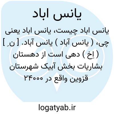 ( یانس آباد ) یانس آباد. [ ن ِ ] ( اِخ ) دهی است از دهستان بشاریات بخش آبیک شهرستان قزوین واقع در 24000 گزی شمال باختری آبیک. دارای 412 تن سکنه است. ( از فرهنگ جغرافیایی ایران ج 1 ).