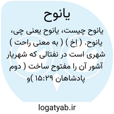 یانوح. ( اِخ ) ( به معنی راحت ) شهری است در نفتالی که شهریار آشور آن را مفتوح ساخت ( دوم پادشاهان 15:29 )و فاندیفلد و پورتر گمان دارند که یانوح همان حنین است و کاندر گمان میکند که یانوع حالیه است که در نزدیکی حدود غربی نفتالی میباشد. ( قاموس کتاب مقدس ).
