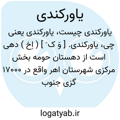 یاورکندی. [ وَ ک َ ] ( اِخ ) دهی است از دهستان حومه بخش مرکزی شهرستان اهر واقع در 17000 گزی جنوب باختری اهر دارای 310 تن سکنه است. آب آن از چشمه است. ( از فرهنگ جغرافیایی ایران ج 4 ).