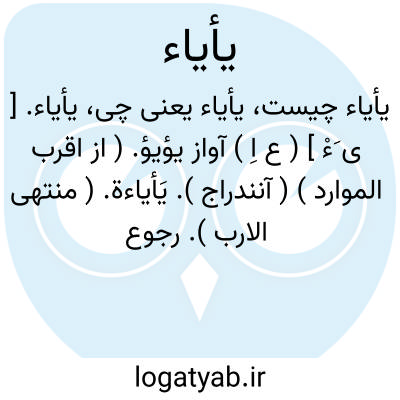یأیاء. [ ی َءْ ی َءْ ] ( ع صوت ) اسم صوتی است که با آن مردم را به گرد آمدن دعوت کنند. ( از اقرب الموارد ). کلمه ای است که در اجتماع و گرد آمدن مردمان گویند. ( ناظم الاطباء ). کلمه ای است که جهت گرد آمدن گویند. ( منتهی الارب ) ( آنندراج ).