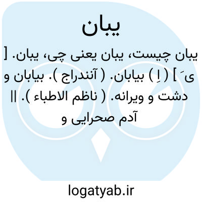 یبان. [ ی َ ] ( اِ ) بیابان. ( آنندراج ). بیابان و دشت و ویرانه. ( ناظم الاطباء ). || آدم صحرایی و بیابانی. ( آنندراج ). || جوالیقی ذیل خباء از موی و پشم مینویسد ابوهلال گفته در فارسی یبان است که معرب شده است و سپس گفته اند خباء. رجوع به المعرب ص 134 س 12 شود.