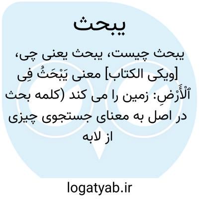 [ویکی الکتاب] معنی یَبْحَثُ فِی ﭐلْأَرْضِ: زمین را می کند (کلمه بحث در اصل به معنای جستجوی چیزی از لابه لای خاکها بوده، سپس در مورد هر جستجوئی استعمال شد)