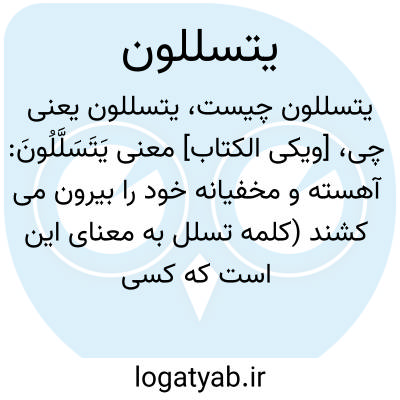 [ویکی الکتاب] معنی یَتَسَلَّلُونَ: آهسته و مخفیانه خود را بیرون می کشند (کلمه تسلل به معنای این است که کسی خود را از زیر بار و تکلیفی به طور آرام بیرون بکشد، که دیگران نفهمند،یا که کسی خود را از میان جمعیتی کم کم وآرام آرام بیرون کشد به نحوی که نخواهد کسی متوجه شود و این کلمه از سل...