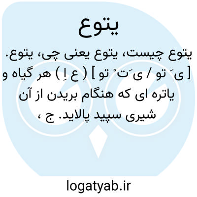 یتوع. [ ی َ تو / ی َت ْ تو ] ( ع اِ ) هر گیاه و یاتره ای که هنگام بریدن از آن شیری سپید پالاید. ج، یتوعات. ( ناظم الاطباء ). هر گیاه و تره که وقت بریدن از آن شیر برآید و شیر آن مدر است و محرق و مقطع و موی را بریزاند و اگر برگ یا تخم آن را در آب ایستاده اندازند ماهی مست شده بر آب آید و جمیع یتوعات در غایت گرمی و خشکی است و اکثر آن در مرتبه چهارم لهذا استعمال آن فقط در خارج اندام جائز داشته اند و خوردن آن بی مصلح جایز نیست و چون بر غیر وجه مستعمل شود بکشد. ( از آنندراج ). و مشهور از آن هفت است: شبرم، لاغیه، عرطنیثا، ماهودانه، مازریون، فلجلشت و عشر. ج، یتوعات. ( از اقرب الموارد ).هر درخت که شیردار باشد مثل زقوم و انجیر و عشر. ( از غیاث اللغات ). یتوع را اجناس بسیار است و او را چنین گفتند که هفت گونه است همه گرم و خشک، مسهل و قی آور و محرق و او مازریون است و عُشر و دیودار و لاغیه و شبرم و شیر انجیر و تریاق نبطی و دگر ماهودانه. ( الابنیه عن حقایق الادویه ). چون طبیبان یتوع مطلق گویندمراد لاغیه است و او سالمترین یتوعات بود، با اینکه او نیز خالی از خطر نباشد چه شیر و تخم و برگ جمله یتوعات زهر و کشنده است. ( از بحر الجواهر ). یتوعات هفت نوع است: مازریون، عشر، سرزیوان، صفریج، یوماملون ( و آن شبرم است ) جلندا، سرمادریج و شیرهاعات. ( نزهةالقلوب ). یتوعات هفت است: عشر، شبرم، لاغیه، عرطنیثا، ماهودانه، مازریون، بنطافیلون. ( یادداشت مؤلف ).