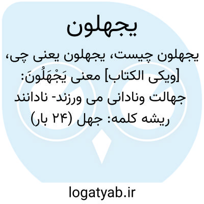 دانشنامه اسلامی [ویکی الکتاب] معنی یَجْهَلُونَ: جهالت ونادانی می ورزند- نادانندریشه کلمه: جهل (۲۴ بار)