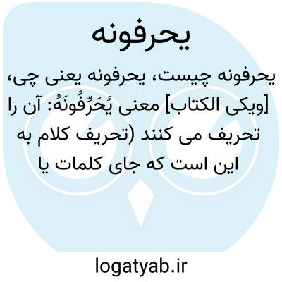 [ویکی الکتاب] معنی یُحَرِّفُونَهُ: آن را تحریف می کنند (تحریف کلام به این است که جای کلمات یا جملات را تغییر میدهند، و پس و پیش میکنند، و یا آنکه بعضی از کلمات و جملات را به کلی میاندازند، و یا به این که کلمات و جملاتی از خود به آن کلام اضافه میکنند)