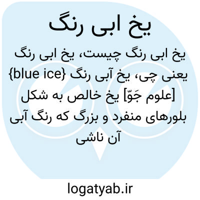 {blue ice} [علوم جَوّ] یخ خالص به شکل بلورهای منفرد و بزرگ که رنگ آبی آن ناشی از پخش نور توسط مولکول های آن است