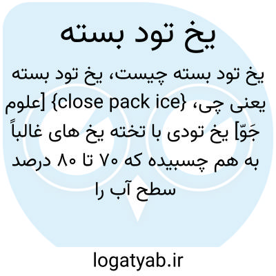 فرهنگستان زبان و ادب {close pack ice} [علوم جَوّ] یخ تودی با تخته یخ های غالباً به هم چسبیده که 70 تا 80 درصد سطح آب را پوشانده است