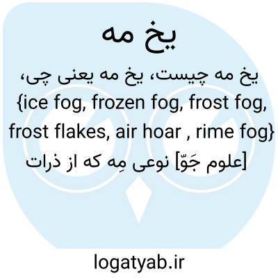 {ice fog, frozen fog, frost fog, frost flakes, air hoar , rime fog} [علوم جَوّ] نوعی مِه که از ذرات یخ معلق در هوا تشکیل میشود متـ. یخ بلورمِه ice-crystal fog