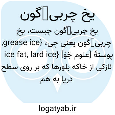 {grease ice, ice fat, lard ice} [علوم جَوّ] پوستۀ نازکی از خاکه بلورها که بر روی سطح دریا به هم بسته می شوند و ظاهری تیره و چربی گون ایجاد می کنند