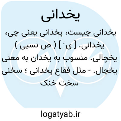 یخچالی منسوب به یخدان به معنی یخچال مثل فقاع یخدانی سخنی سخت خنک و بی مزه